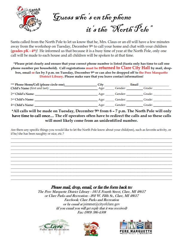 Register now to get a call from Santa!